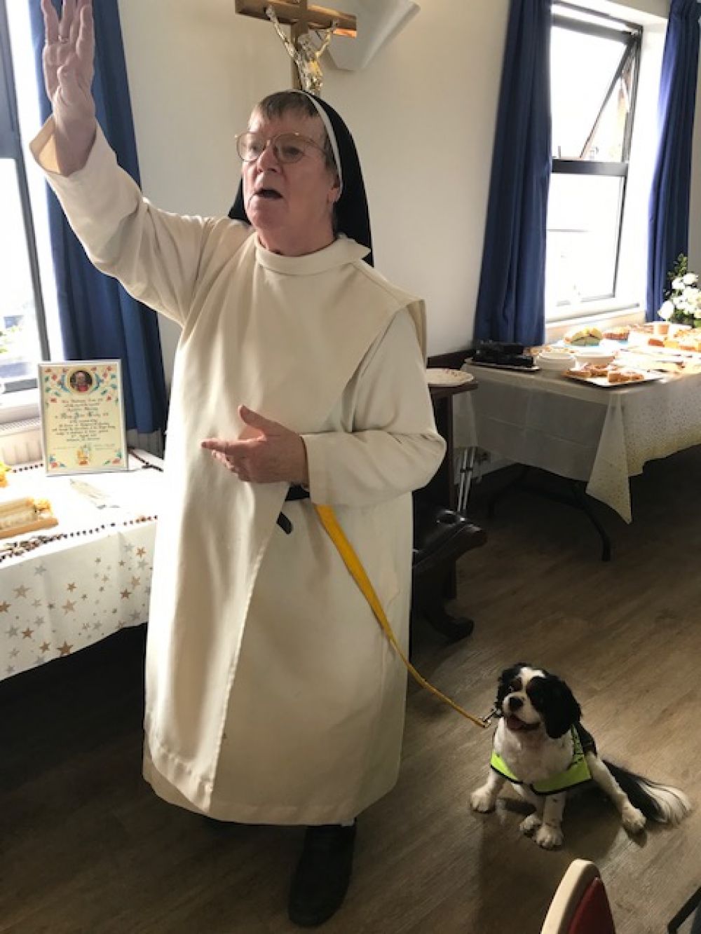 On August 23rd Sr. Mary John celebrated her Golden Jubilee. A beautiful Mass with many priests was held at St Peter's Catholic Church Leicester, after which a splendid buffet was shared by Sr Mary John's many friends, sisters and colleagues, including several guide dogs who sat at the back of the Church and behaved (nearly) impeccably.